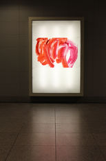 Once I have seen empty city lights at Keleti railway station and I thought it is a rare opportunity to put my transparent gesture paintings onto it and see how they look when there is a strong LED light in the background.